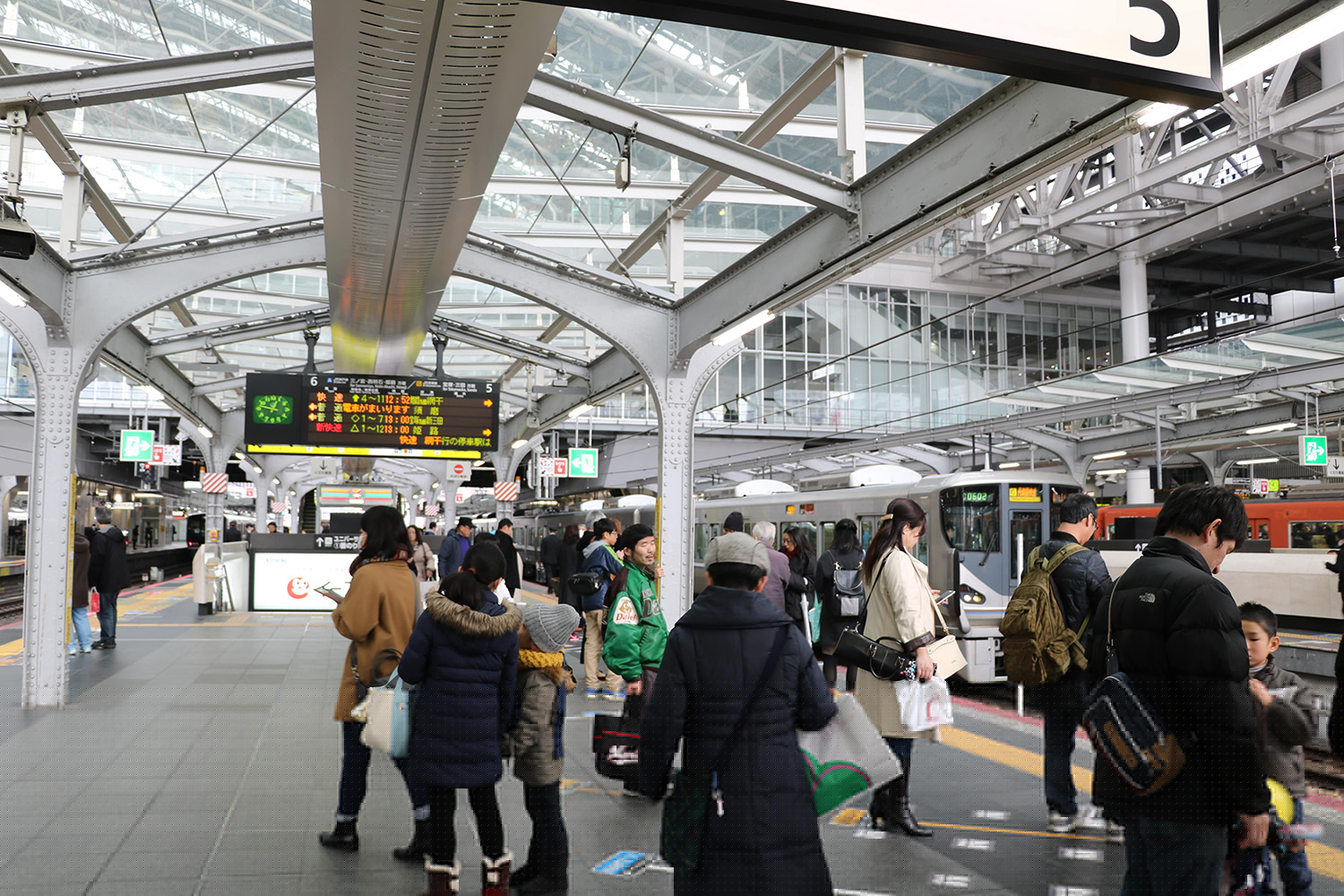三田や宝塚の住宅地から出てくる人・帰る人と旅行客が混在する。