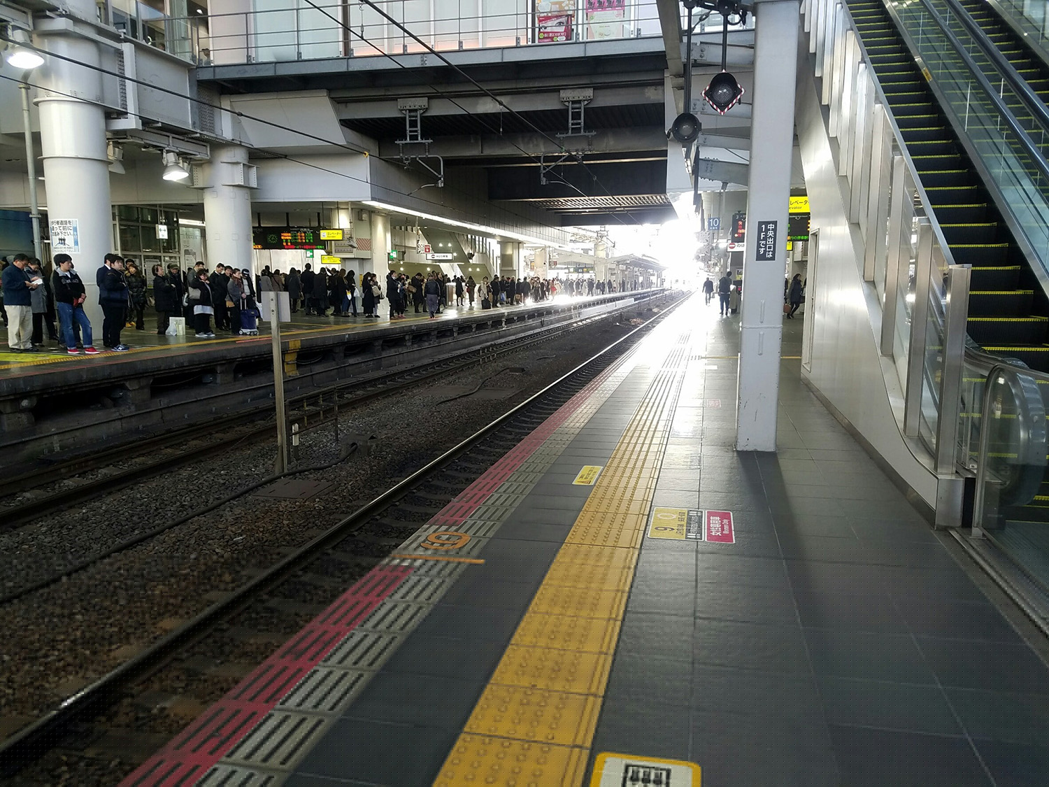 阪急線もわりあい近くを走っているので両方使う人もいる。混雑は少なめ。