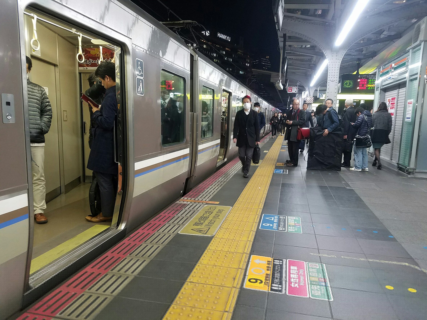 京都線と同様、沿線に住んでる人も観光客も使うので1日を通して混雑する。