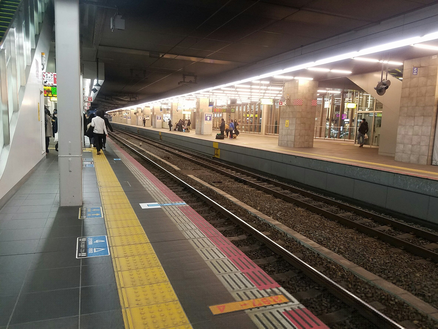9・10番線のホームは朝と夕方の通勤・通学ラッシュ時のみ新快速が発着する。