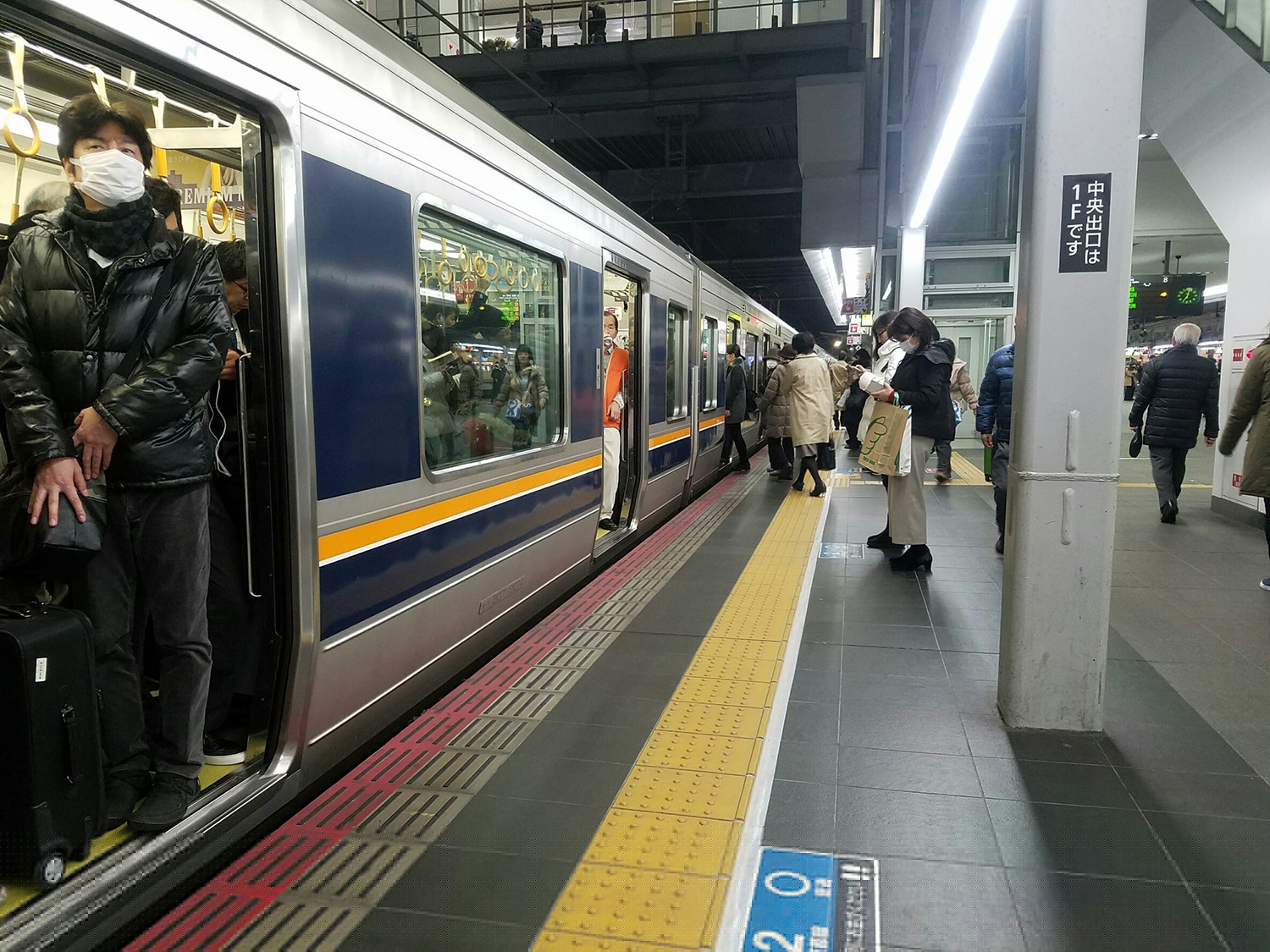 神戸線と同様、沿線に住んでる人も観光客も使うので1日を通して混雑する。