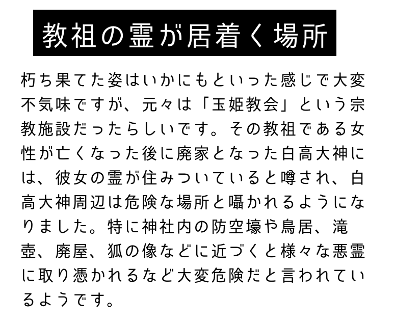 白高大神は奈良最大の心霊スポットと噂されている廃神社です。稲荷を祀る神社として大変栄えていた時期がありましたが、時代の変遷に伴い次第にさびれていったようですね。
